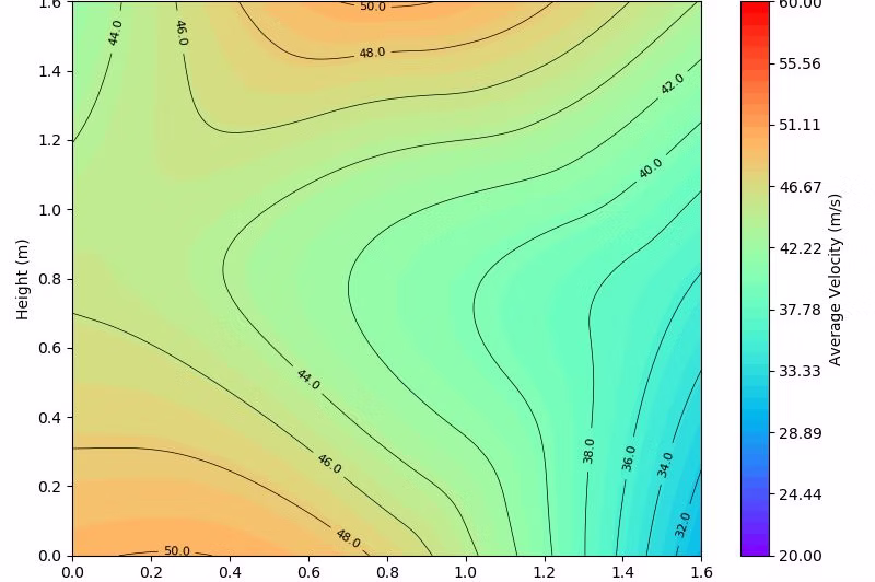 The graph below present propwash air velocity map 8m behind the airplane.